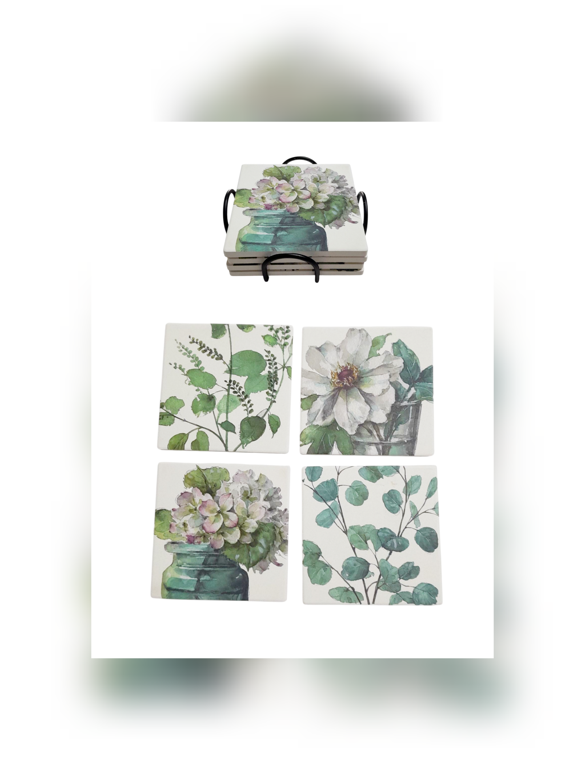 Danny Home Ceramic Coasters with Metal Holder, 4pk